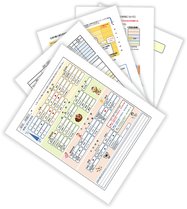 2回分のアドバイスレポート。1回目のレポートを参考にご自分で食と生活を改善後、2回目検査を受ける時期はご自分でお決めください。